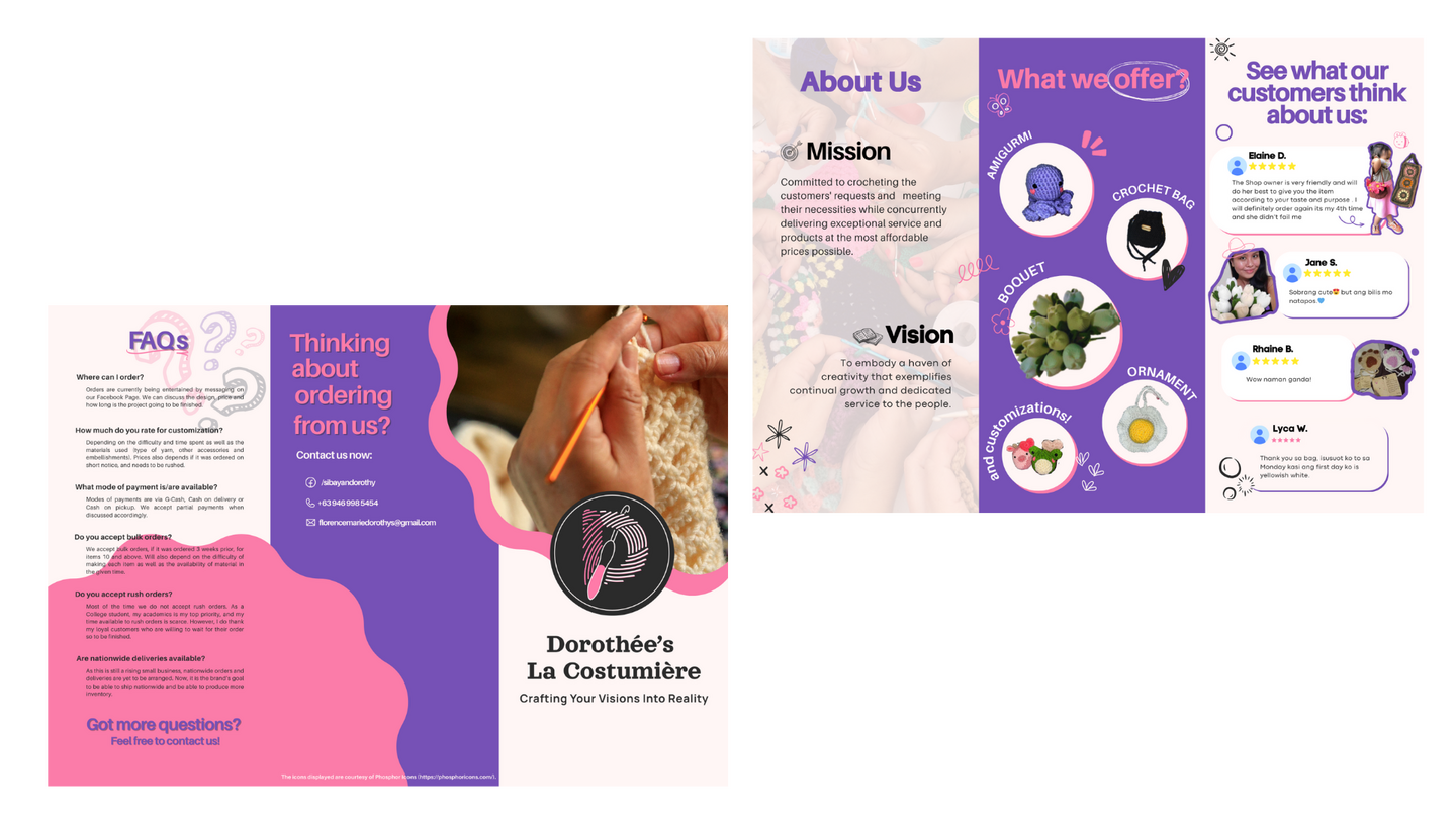 In my Graphic Design subject, the professor tasked us with rebranding an existing organization. As of this writing, I made a logo, website design, calling card, brochure, and tarpaulins for a booth mockup design.For a web design-focused portfolio, you may view it here.
